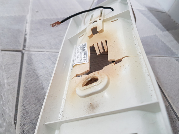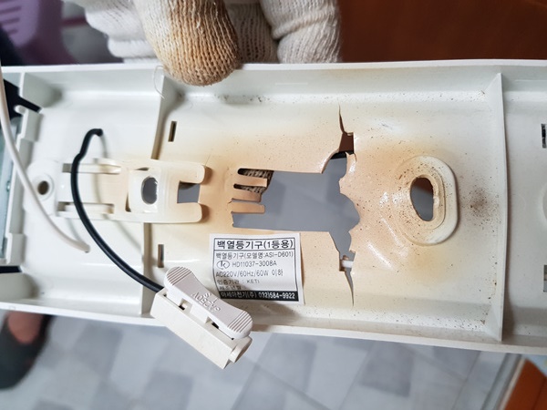 자칫 불이 날뻔한 상황이었지만 다행히 전등 주변만 녹아 내린 상태........ 후덜덜 지금 다시 봐도 끔찍하네요.