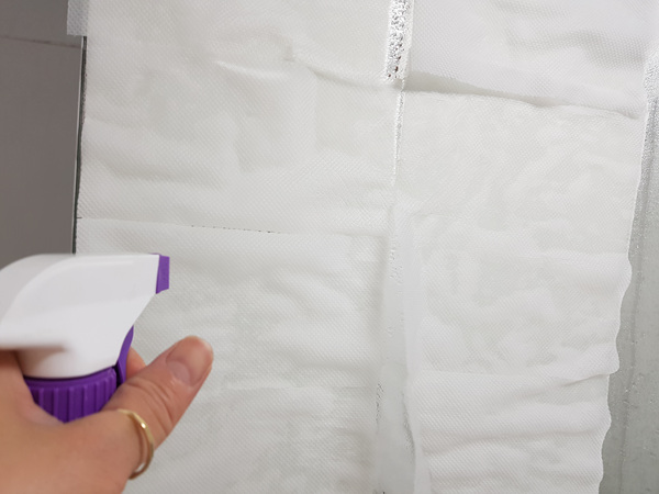 키친타올이나 휴지를 유리에 붙여 줍니다. 그리고 티슈가 충분히 젖을만큼 또 식초를 뿌려줍니다.