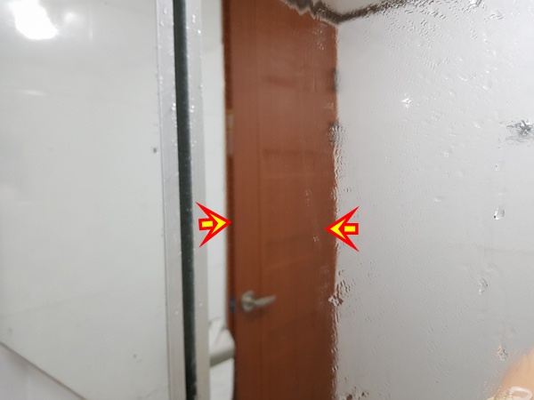 이렇게 꼬질꼬질한 욕실거울이 정말 닦일까? 의구심이 들지만 해보고 결과를 알리기 위해 사진촬영 하기로ᆢ
