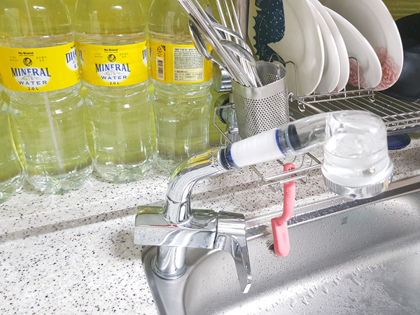 그래서 얼마전 필터가 장착된 수전으로 교체했다. 수돗물에 이상이 있거나 이물질이 나오면 바로 걸러 주는 필터가 있는 제품이다.