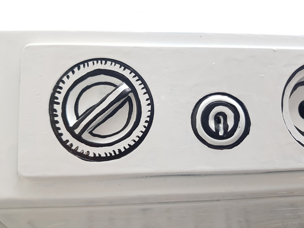 하루 꼬박 잘 말려 놓으니 땟깔이 좋다. 마치 원래 하얀색이었던 것처럼...이제 검정색으로 일일이 디테일하게 그림을 그려 주면 2D 효과가 지대로 난다.
