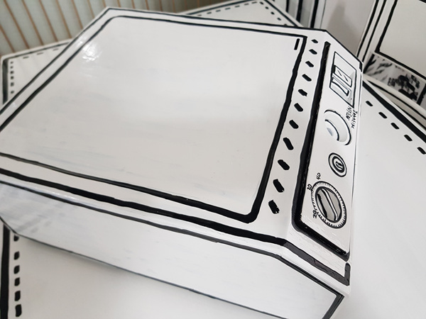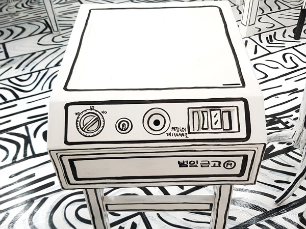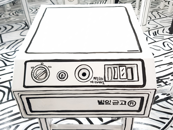 가게 컨셉이 2D 느낌이라 이것도 2D 컨셉을 가기로 했다. 흰색 페인트와 검정색 페인트만 있으면 뭐든 만화 속 그림 같은 소품이 완성된다.