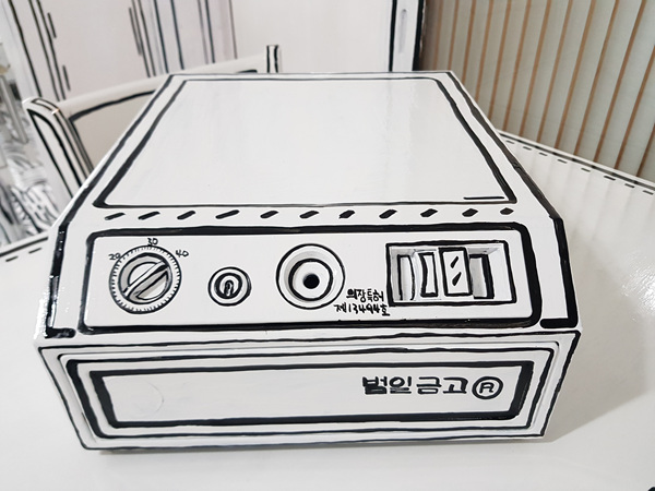 너무 오래되고 낡아 버리려던 금고가 나의 손길로 인해 멋지게 변신되었다. 가게 컨셉에 맞게 2D 금고가 된 것이다. 뭐든 버릴 것이 있어도 한 번 더 생각하는 이유는 바로 이런 멋진 작품이 나오기때문이다. ^^