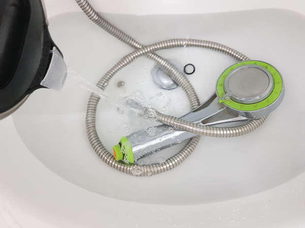 샤워기헤드 안쪽은 온수를 틀어 1분 정도 두면 자연스럽게 안쪽의 구연산도 없애줍니다.