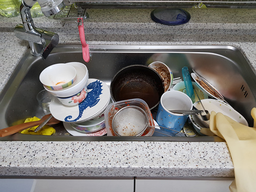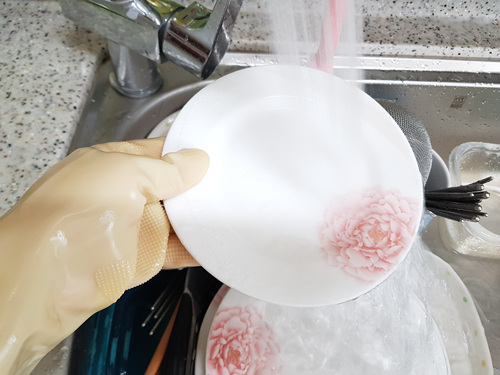 그럼 올바른 설거지법 보실까요. 먼저 설거지 전 온수로 그릇들을 적셔 주세요. 설거지통이 있으면 물에 불린 뒤에 설거지를 하셔도 됩니다. 만약 기름기가 많은 그릇이라면 씻기 전에 온수로 씻어내는게 나을 듯 해요.