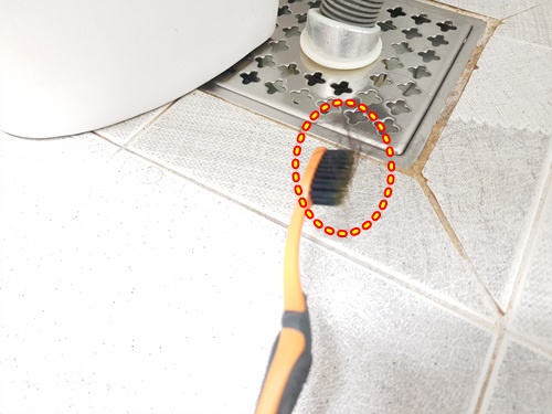 한가지 더 팁 들어갑니다. 하수구에 모인 머리카락은 버리는 칫솔을 이용해 제거하세요.