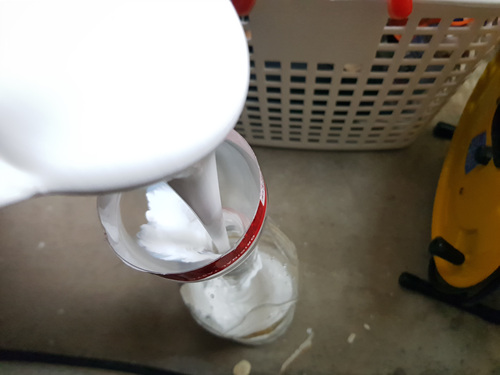 이렇게 페트병에 페인트를 보관하면 필요한 만큼 페인트를 덜어 사용하기도 좋고 무엇보다도 뚜껑만 닫으면 페인트가 마르지 않고 보관도 용이하니 정말 괜찮겠죠.. 별게 아니지만 셀프 인테리어를 하다 보니 잔머리가 많이 사용되는 것 같아요. 하하~