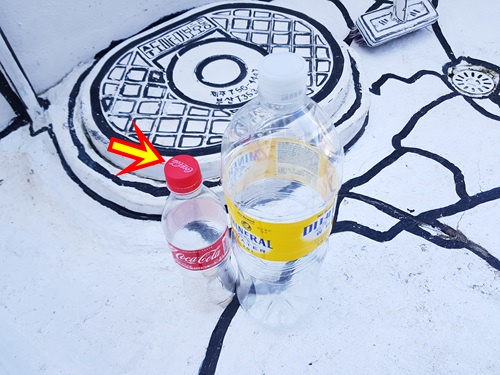 " 코카00 페트병을 큰 페트병 입구에 끼우면 된다.. "