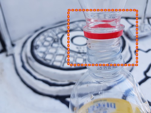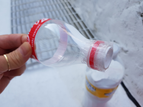 페인트를 페트병에 다 부은 뒤엔 칼로 서로 연결된 부분 즉, 스카치테이프를 잘라 주면 됩니다.