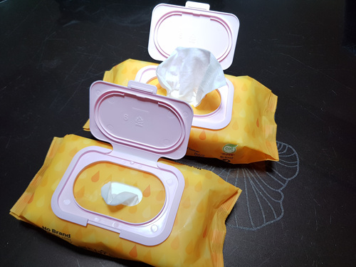 물티슈 덮개가 있는 것과 없는 것은 마트에 가면 약 100원 정도 차이가 납니다. 별거 아닌 돈이긴 하지만 사실 한 달에 100개 이상 사용하는 곳에서는 그렇게 적은 돈이 아니지요. 사실 가게에서 뿐만 아니라 가정에서도 많이 사용하기때문에 요즘엔 마트에서도 알뜰 물티슈가 많이 나옵니다.