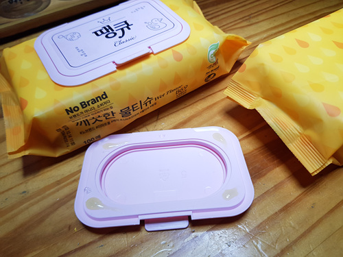 비닐로 된 물티슈 덮개 보다 훨씬 실용적이죠..물론 저렴하게 구입한 물티슈에 덮개만 리필하면 되니 이 또한 절약적인 면도 있어요. 물티슈 사용 후 덮개만 잘 덮어 두면 마르지도 않고요.