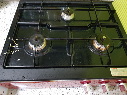 그리고 가스렌지 주변 분리할 수 있는 것도 분리해 주세요. 사실 그곳이 제일 더럽긴 해요. 가스렌지 청소할때 그 부분만 쏙 빼고 청소할때가 많거든요.