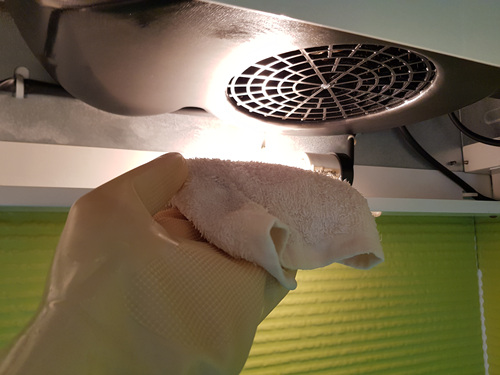 후드를 담근 후엔 주변 청소를 하면 됩니다. 그럼 순식간에 청소가 진행 되지요. 후드 안쪽을 닦을때는 뜨거운 물을 적셔 닦으면 잘 닦입니다. 기름이 많다면 주방세제 약간 묻혀서 닦으면 잘 닦입니다. 물론 주방세제를 닦은 후엔 깨끗한 티슈로 한 번 더 닦아 주세요.