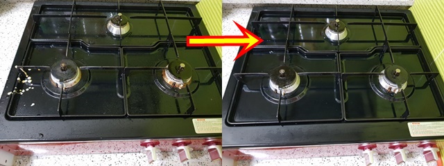 가스렌지 청소 전과 후 비교 사진입니다. 정말 깔끔해졌죠~