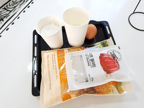 젤라틴이 들어가 있기 때문에 실온에서는 잘 굳습니다. 그렇기때문에 중탕을 수시로 해 줘야 해요. 이게 제일 힘들었던 거 같아요..