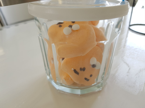 ㅎㅎ... 곰돌이도 귀엽긴 하네요. 솔로 잘 털어서 유리병에 보관한 후 먹기 직전 꺼내 데코레이션해 먹으면 됩니다.