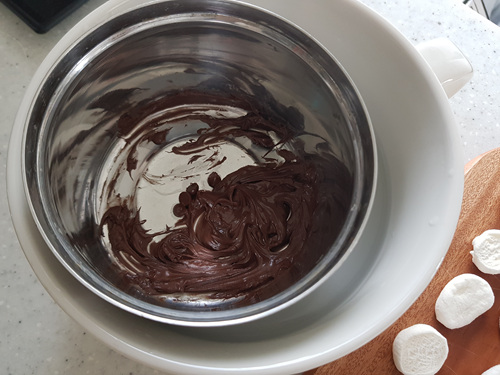 초코릿을 갈아서 중탕해 데코를 해 보기로 했어요. 그랬더니 초코릿이 녹는 시간도 단축되고 처음 보다는 괜찮았어요.