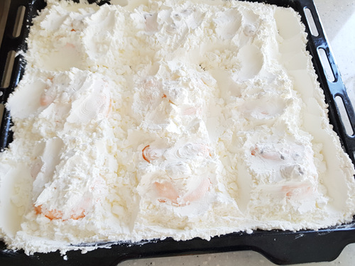 그다음 옥수수전분을 넓는 판에 펼쳐 놓습니다.