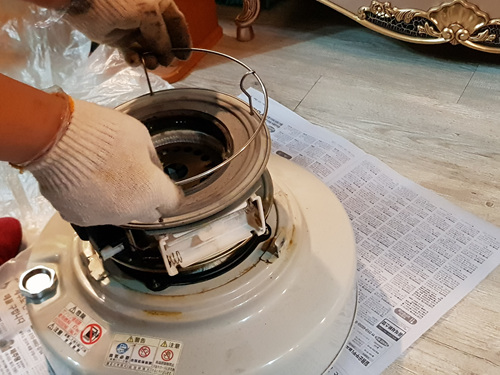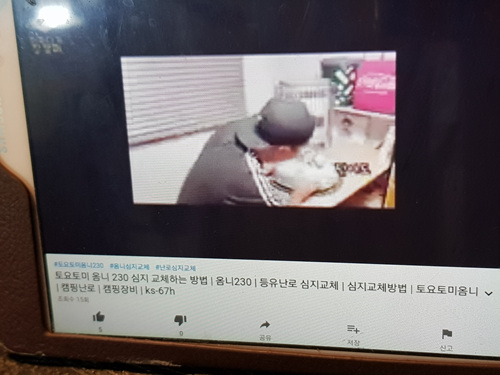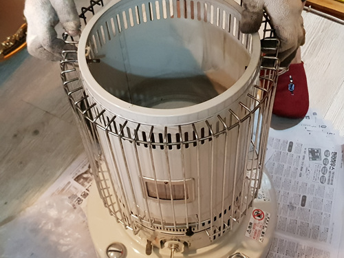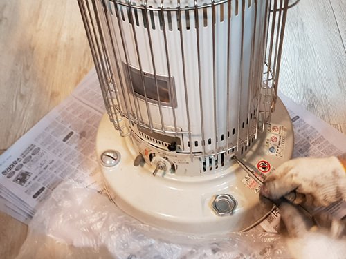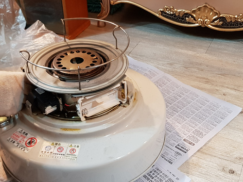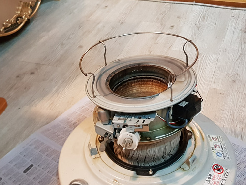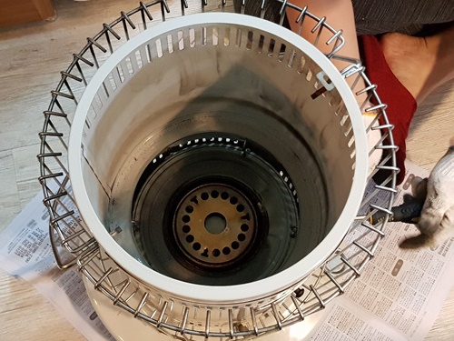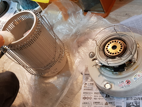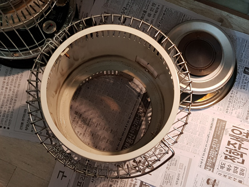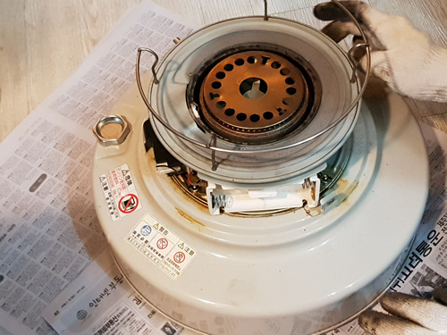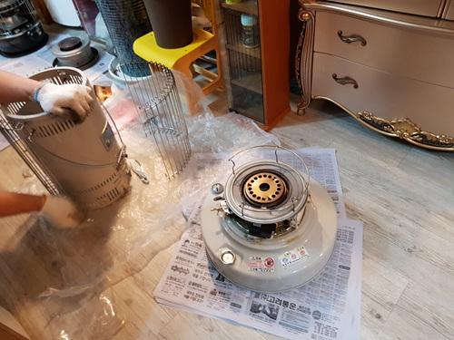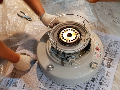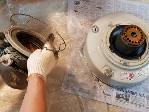 심지 교체 하는 것을 보여 주는 난로는 토요토미 난로입니다. 캠핑 난로로 나름 유용하게 사용되는 난로입니다.
