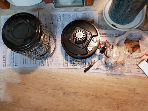 유튜브를 보고 설명한 대로 난로를 일일이 분리하니 저도 생각보다 어려워 보이지 않더라고요
