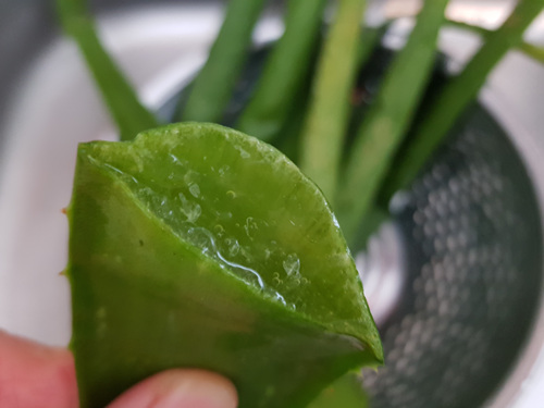 시들했지만 잘라 보니 알로에 진액이 정말 많죠... 파는 것 못지 않네요.