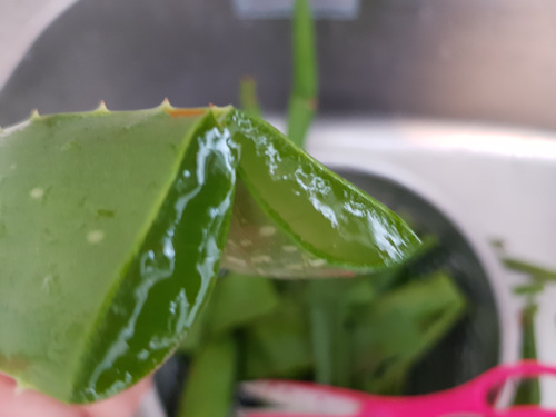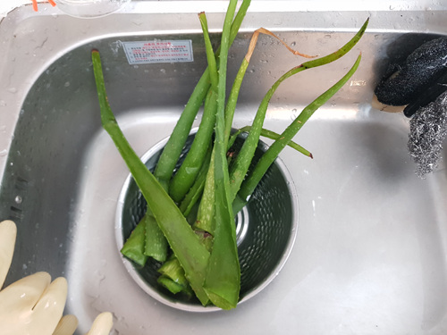 시들했지만 잘라 보니 알로에 진액이 정말 많죠... 파는 것 못지 않네요.