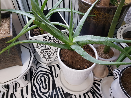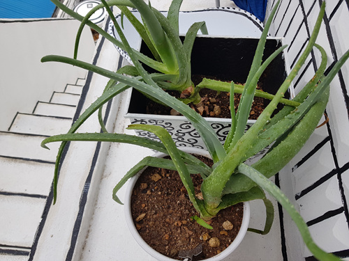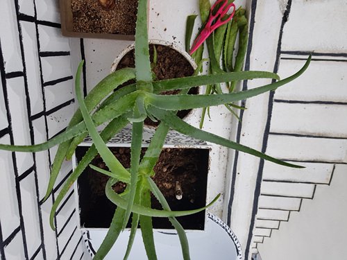 시들한 모습의 알로에입니다. 영 힘이 없어 보이고 줄기도 가늘해졌어요.