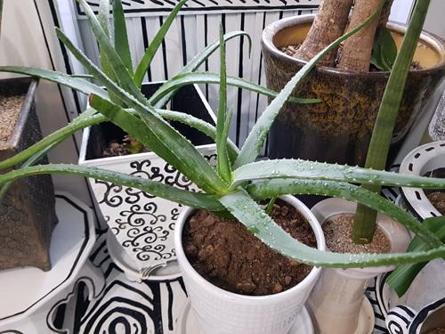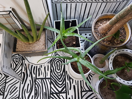 가게에 두고 키우는 알로에입니다. 시들한 부분을 가지치기 해 놓으니 오히려 더 싱싱하게 자라는 것 같아요.
