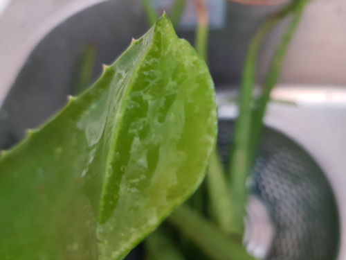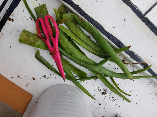 시들시들해 보였지만 가위로 자르니 알로에 진액이 생각보다 많아서 놀랐어요.. 그냥 버렸다면 아주 후회할 뻔 했습니다.