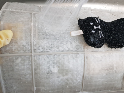 한 여름에 한 번 씻어서 사용했긴 했지만 커버를 씌우기 위해 한 번 더 확인하니 역시나 필터에 먼지가 있더라구요. 그래서 씻기로 했지요.