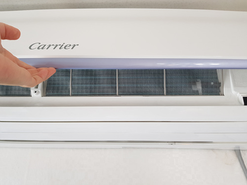 에어컨 필터는 에어컨 커버를 올린 뒤 살짝 필터를 위로 밀어서 빼면 쉽게 빠집니다.