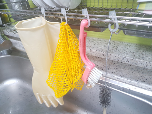 설거지할때 자주 사용하는 수세미와 청소용 솔을 걸어 두면 물기도 잘 빠지고 너무 편해요. 물론 따로 일일이 걸어 두다 보니 위생적이기까지 합니다.