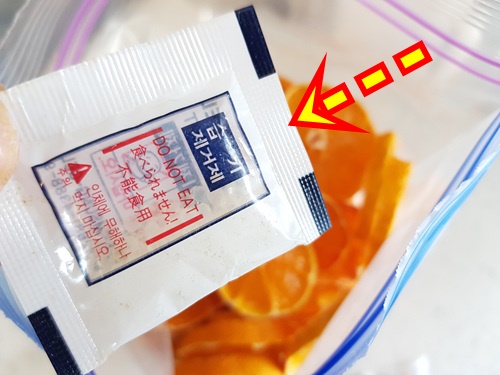 남은 과자나 감귤칩은 실리카겔을 넣어 보관하면 눅눅하지 않아 좋아요.
