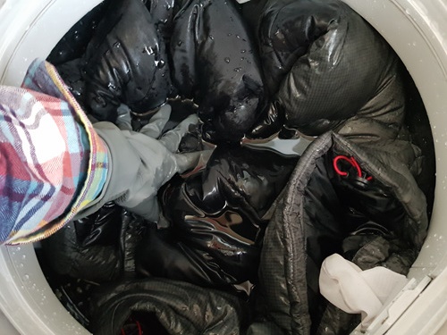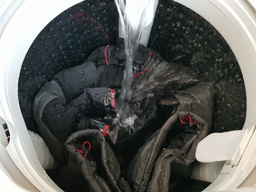 그렇게 하면 오리털파카가 숨이 죽어 세탁하기 훨씬 수월합니다.