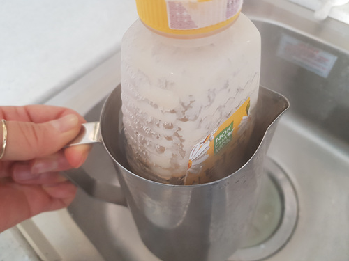 ' 결정화 된 꿀은 따뜻한 물에 병째로 넣어 중탕으로 자연스럽게 녹이면 됩니다. '