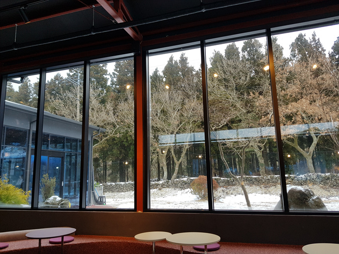 눈이 오던 날이라 이쁘게 보였던 송훈파크 내 하이드브레드 카페였습니다.