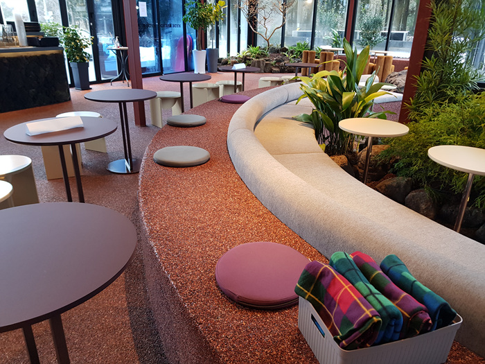 내부에 있는 테이블도 부드러운 곡선의 느낌의 인테리어라 그런지 이쁘더군요. 카페는 뭐니뭐니 해도 처음 봤을때 편안한 뭔가가 있어야 하잖아요. 그런 느낌을 잘 살린 것 같았습니다.