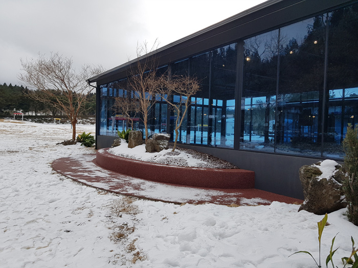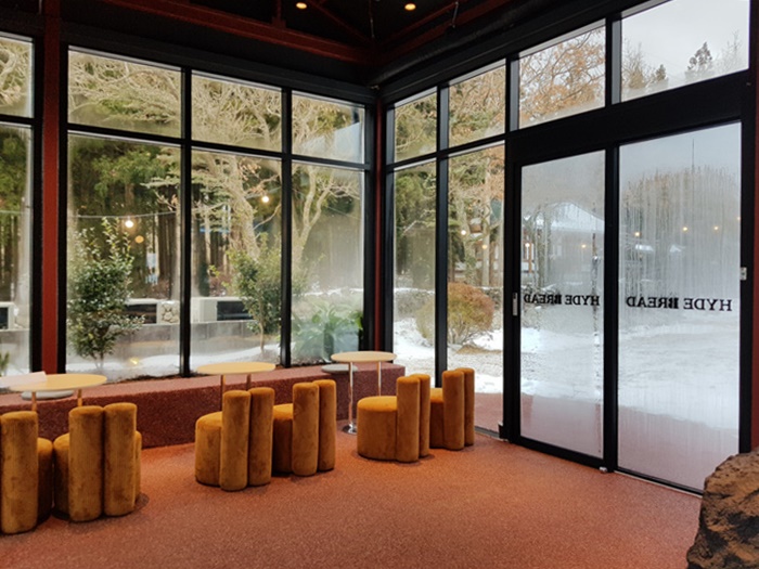 눈이 오던 날이라 이쁘게 보였던 송훈파크 내 하이드브레드 카페였습니다.
