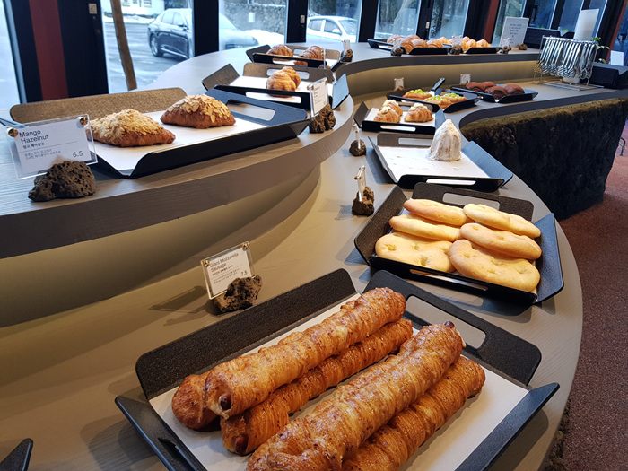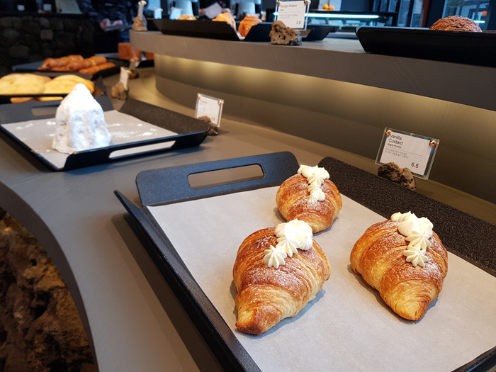 창고 같았던 외부와 달리 내부는 넓직했고 빵 진열대도 곡선으로 되어 있어 고르는데 편한함을 가져다 주었습니다.