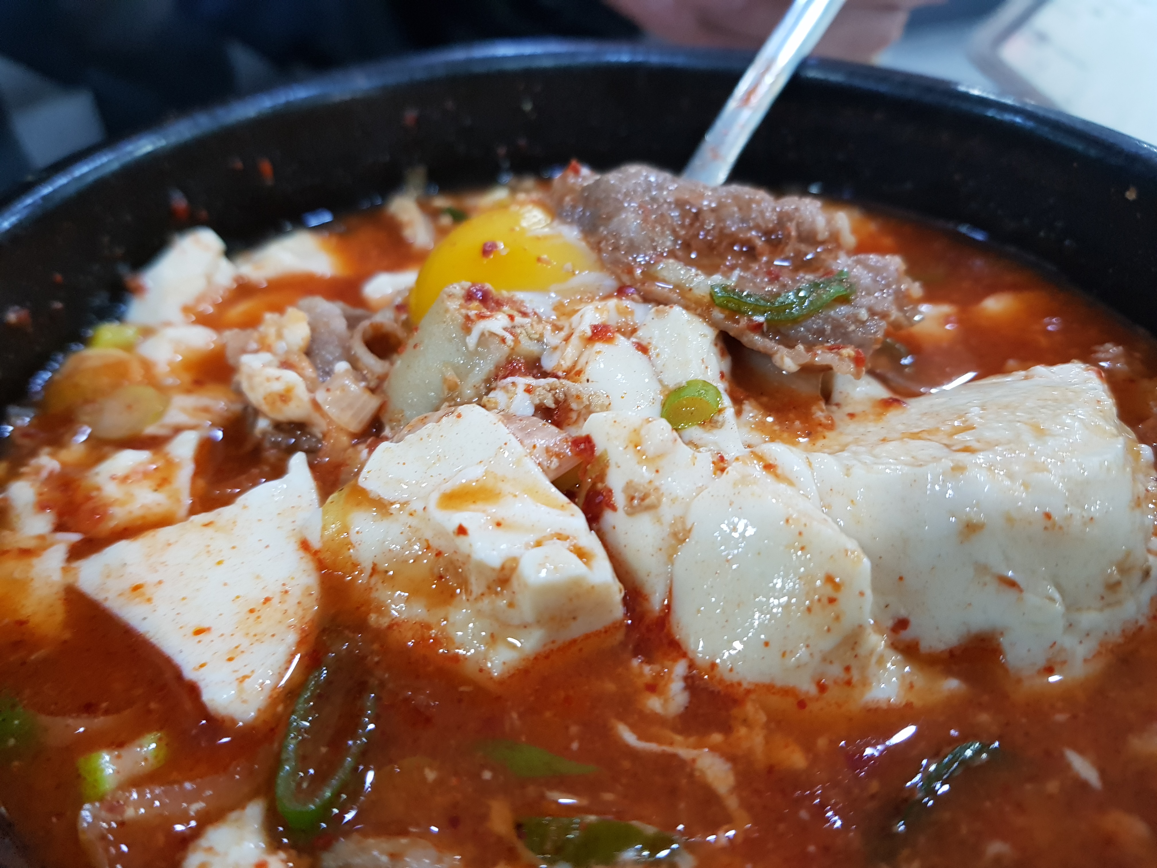 순두부에 날달걀을 넣어 드시기도 하고 그냥 드시기도 합니다. 전 달걀을 넣으니 매콤한 맛과 간이 센것도 조금 완화해 줘서 괞찮았습니다.