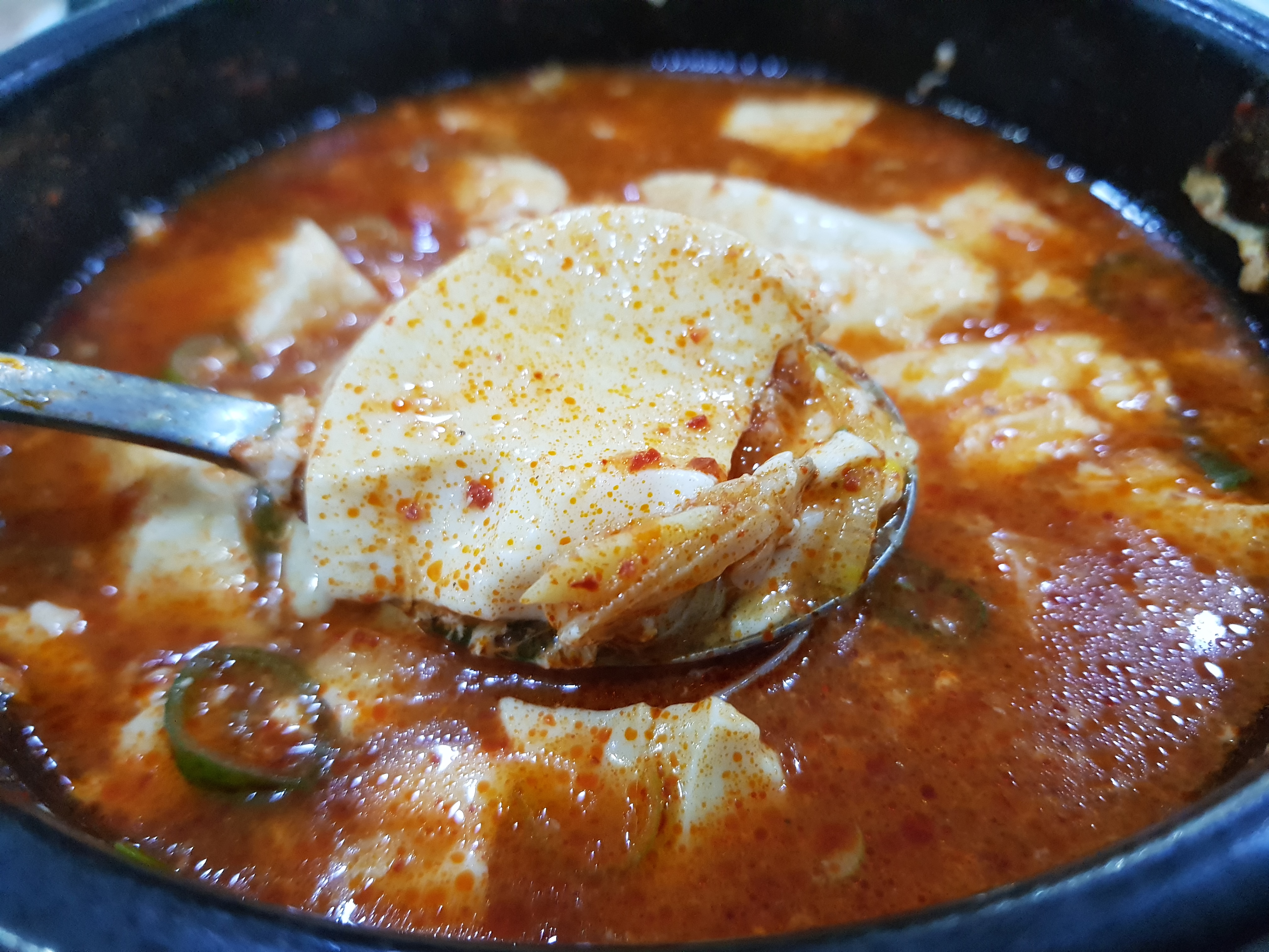 순두부에 날달걀을 넣어 드시기도 하고 그냥 드시기도 합니다. 전 달걀을 넣으니 매콤한 맛과 간이 센것도 조금 완화해 줘서 괞찮았습니다.