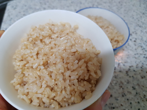 씻은 현미는 평소 백미로 밥을 할때처럼 물을 넣어 압력밥솥에 한번 해 주세요. 치카치카 소리가 나면 약 5분 뒤 가스불을 끄고 뜸을 들이세요.