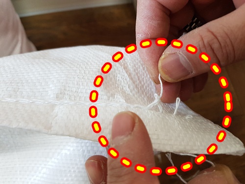 살포대 푸는 법은 생각했던것보다 수월해 보이더군요. 먼저 가위로 자릅니다. 그리고 난 뒤엔 박음질 잘 된 부분 뒷쪽ᆢ