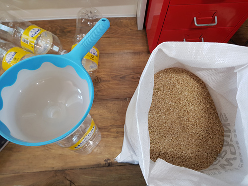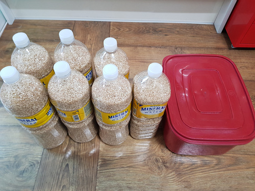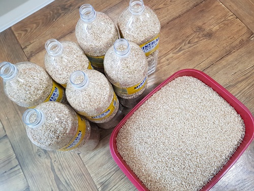 페트병에 담으니 7개에 10kg 현미 정도 넉넉히 들어 갔어요. 쌀을 넣으실 분들은 참고하시면 될 것 같아요.