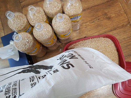 얼마전에 현미가 똑 떨어져 주문했어요. 보통 주문하면 20kg 정도 주문하는데요.. 현미는 백미와 달리 보관을 잘 해야 해요. 왜냐하면 너무 따뜻하거나 습하면 곰팡이가 생기기 쉽거든요. 전 지퍼백이나 페트병을 활용합니다.