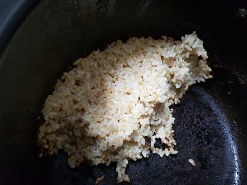 그나마 밥을 적게 해서 다행이지..... 하여간 밥이 타긴 했지만 현미라 고소하게 그냥 먹었네요.. ^^;;;; 그리고 남은 밥은 다른 방법으로 누룽지를 만들어 봤습니다. 혹시나 될까? 하는 마음으로......