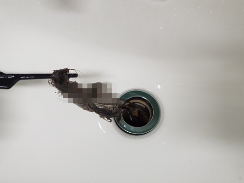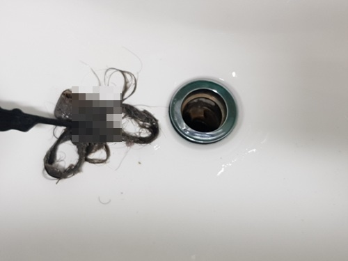 세면대에서 머리를 헹구는 습관 때문에 빠진 머리카락이 세면대를 꽉 막고 있었던 셈이었습니다. 머리가 짧았을 때는 이런 일이 없었는데 조금 많이 당황했네요.