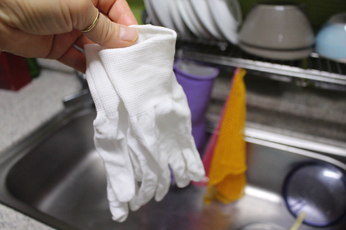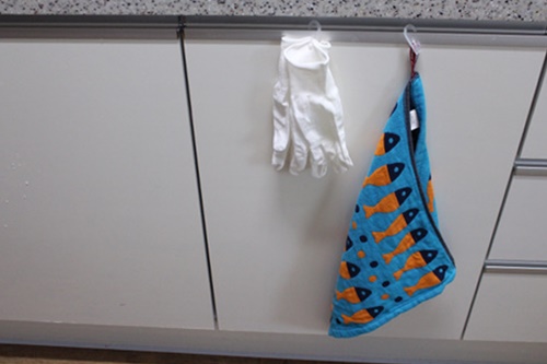 고무장갑 착용하기 전 속장갑으로 사용하는 면장갑에 고리를 끼워 걸어 두니 이또한 유용하더라구요.. 손에 땀이 날때도 있는데 위생적으로 건조도 가능하고요.
