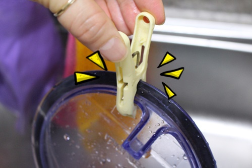 "오잉! 이건 뭐야? " 하고 궁금해 하실 분들 주목해 주세요. 이건 바로 설거지 할때 걸리적 거리는 싱크대 개수구뚜껑인데요.. 빨래집게를 꽂아 세워두면 설거지 할때 걸리적 거리지 않고 좋아요.