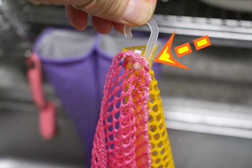 수세미 또한 설거지 후 잘 건조하는게 중요하죠... 이럴때도 고리 이용하면 유용해요.